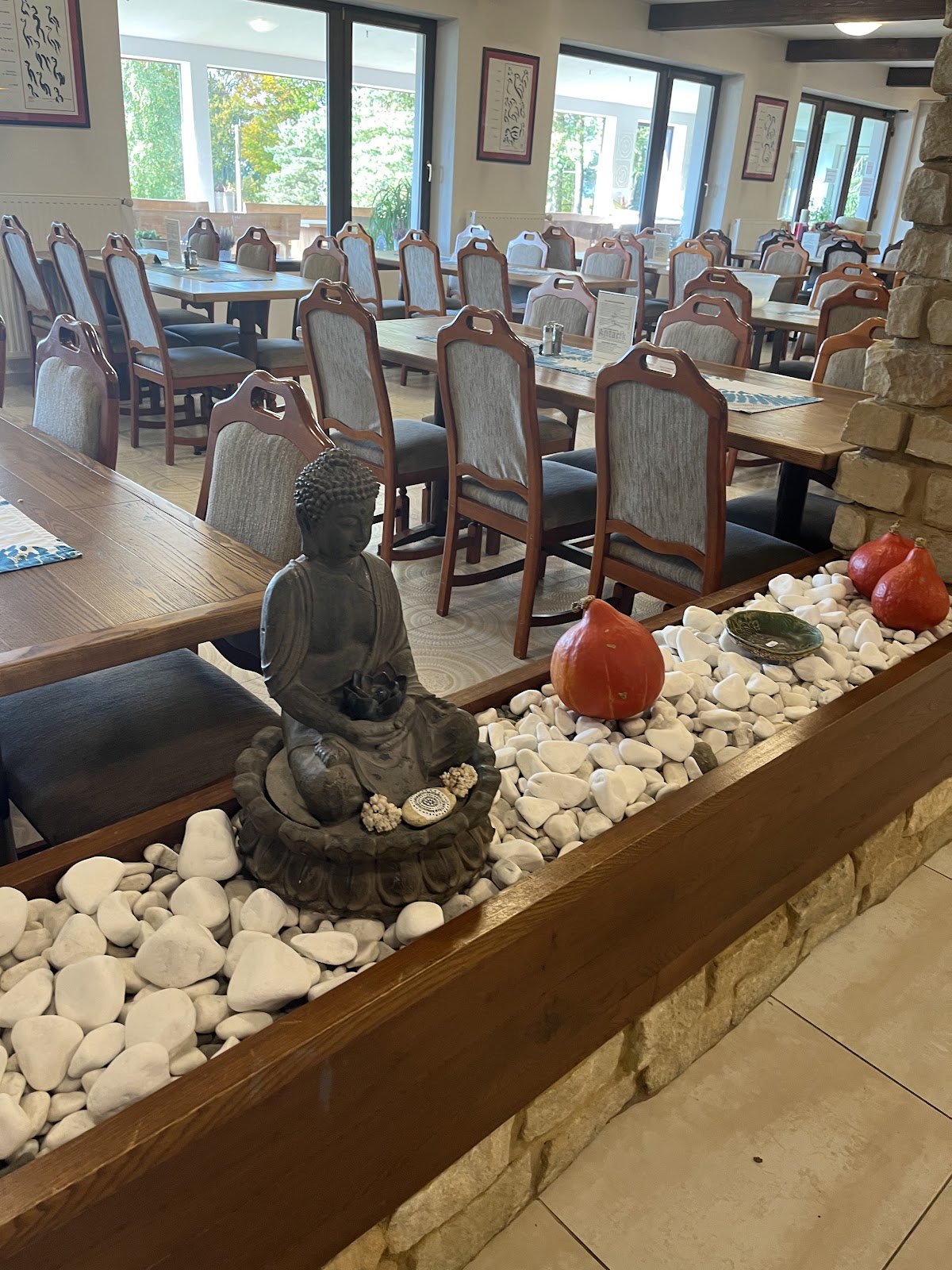 Zapomeňte na starosti s jídlem, skvělá vegetariánská kuchyně, převážně z místních surovin a vše od základů připravené s láskou zde na místě. Plná penze, bohatá strava. Také si můžete dopřát bylinkové čaje s nasbíraných místních bylin, nebo voňavou kávičku a přitom se kochat přes velká okna panoramaty okolních hor.